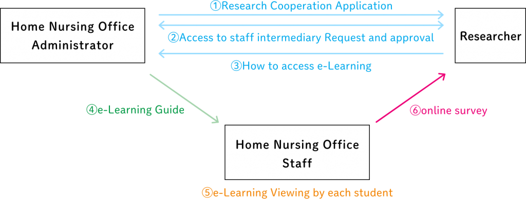 - ④ Please distribute the “Request for Research Cooperation” explanatory material for staff from the manager, post it in the office, and then provide information on how to access the e-learning system.